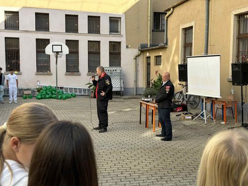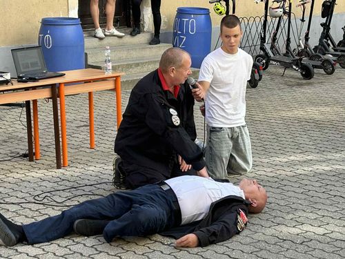 Hagyományainknak megfelelően 2025. szeptember 15-én Klupács Péter és Pavelcze László a kilencedik évfolyamos tanulóknak tartott bemutató órát az életmentésről.
